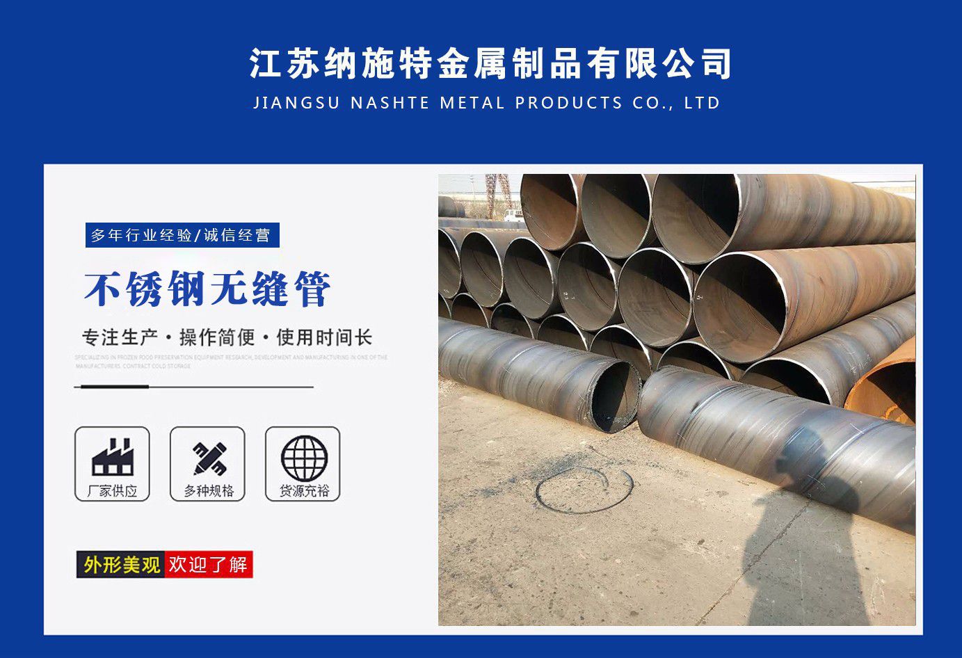 江蘇納施特金屬制品有限公司是一家集生產205不銹鋼無縫管,2507不銹鋼無縫管,316l不銹鋼焊管廠家,不銹鋼工業焊管廠家,厚壁無縫鋼管廠家等產品,公司庫存多規格齊全、質量保證。公司一貫以服務至上、質量至上、價格合理、客戶至上、讓利客戶、薄利多銷為原則,誠實守信為宗旨?! 」颈小皟炠|的品質和服務創造企業品牌”之宗旨,與國內外多家知名廠商建立了長期穩定的合作伙伴關系,精心匯聚各廠商的品牌產品,實現了資源互補,以適應市場的不同需求,協助廣大廠商提高自身的競爭力,是您的理想合作伙伴?! 」鞠聦伲簶I務部、財務部、快運部、運輸部、倉儲部、加工部、(自備貨車、吊車、行車、自動切割、半成品)免費為用戶提供裝卸等一條龍服務。保證用戶利益、互惠互利做生意、誠心誠意交朋友?! 》粘兄Z:提供優質的不銹鋼及有關產品,遵守道德標準,努力提供獨特的產品和高水平服務?! ≠|量承諾:隨時為客戶提供產品和服務,充分領會客戶要求,盡職盡責,永無例外,竭盡全力,持續發展?! 」颈校骸邦櫩椭辽?,銳意進取”的經營理念,堅持“客戶至上”的原則為廣大客戶提供優質的服務?! ≡肝覀児竞蜕鐣鹘缤?、諸位朋友、尊貴的各位客戶攜手并進,共同發展,同繪新世紀的宏偉藍圖! 公司宗旨:優質的品質和服務創造企業品牌。 經營理念:以...